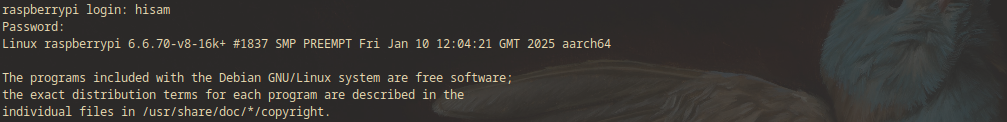 raspberrypi login: hisam