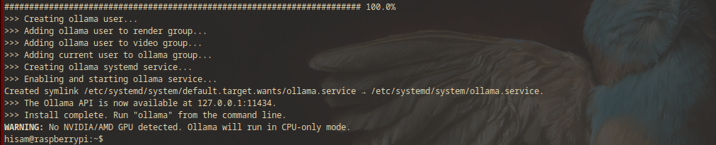 After installation, Ollama sets up a system service.